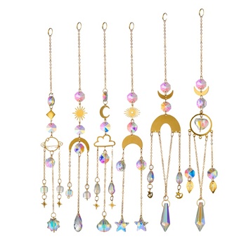 Atrapasueños de Luna y cristal con forma de ojo malvado, decoración de Metal y oro, arte de pared colgante, campanilla de cristal, Prisma, estrellas, artesanías